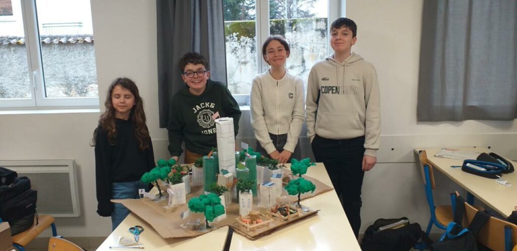 Par groupes, les élèves ont imaginé des villes innovantes en réfléchissant aux modes de logements, aux transports, aux sources d’énergie, à la gestion des ressources alimentaires, et bien plus encore 🌱⚡🚲