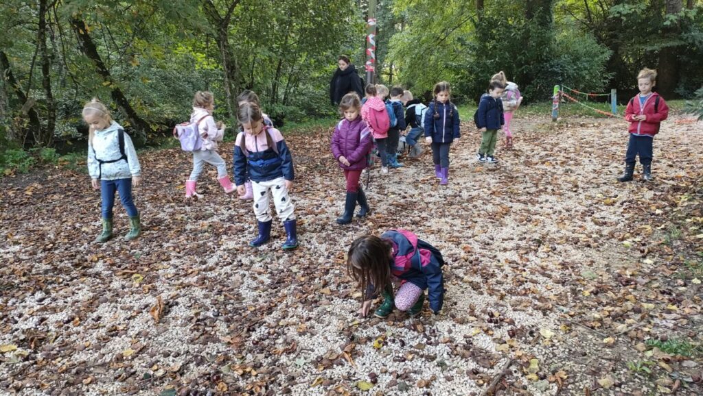 En classe, nous avons parlé de l’automne. Nous avons joué à différents jeux pour connaître les caractéristiques de l’automne: jeu de loto, jeu d’oie, jeu du « J’ai..Qui a »?. Nous avons étudié l’histoire de « L’arbre roux » et réalisé divers travaux sur les couleurs de l’automne. Mais quoi de mieux que de se promener dans la nature: observer les arbres, ramasser les fruits, les feuilles. Pas toujours facile de différencier une châtaigne d’un marron. Alors, un matin, avec Fabienne et Morgane, nous sommes allés marcher au bord de la Charente: quel beau spectacle!