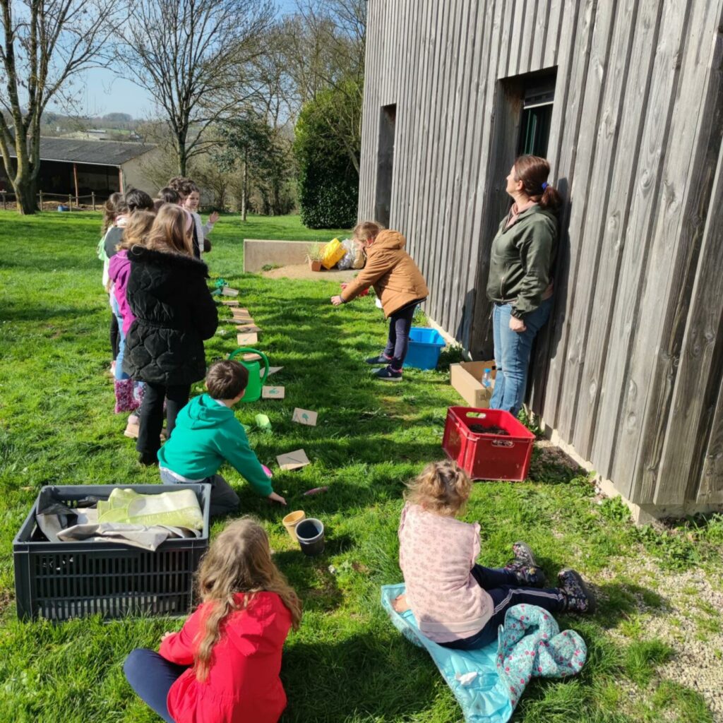 Cet après-midi, vos enfants ont passé l’après-midi dehors sous un beau soleil. Nous avons revu les différents outils de jardinage en les cherchant dans le jardin, puis en mimant leur utilisation pour les faire deviner aux autres. Ensuite, nous avons trié différentes sortes de graines. Nous avons planté des graines de radis et planté des boutures de plantes différentes comme du papyrus, une plante surnommée la misère.