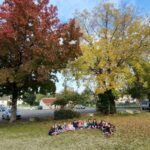 Lundi matin, 14 octobre, les élèves de GS-CP étaient plus que prêts pour partir avec leurs camarades, Fabienne, leur maîtresse; Émeline, leur ASEM et Virginie (maîtresse sur les temps de décharges des CP-CE).