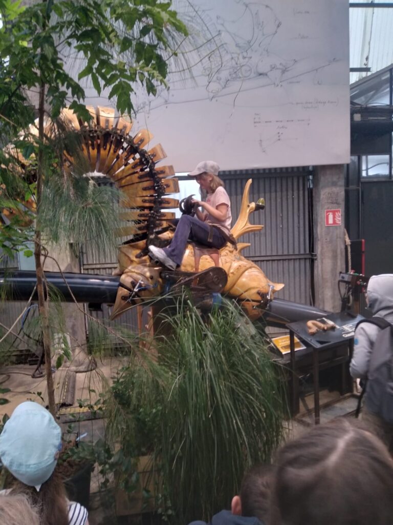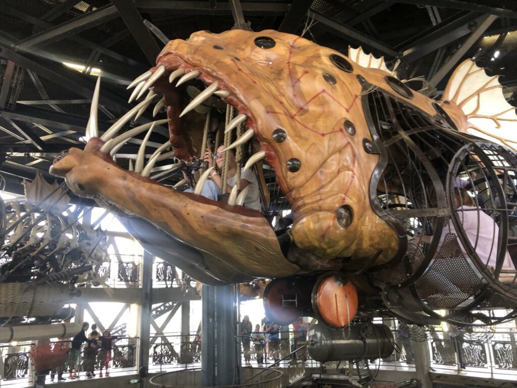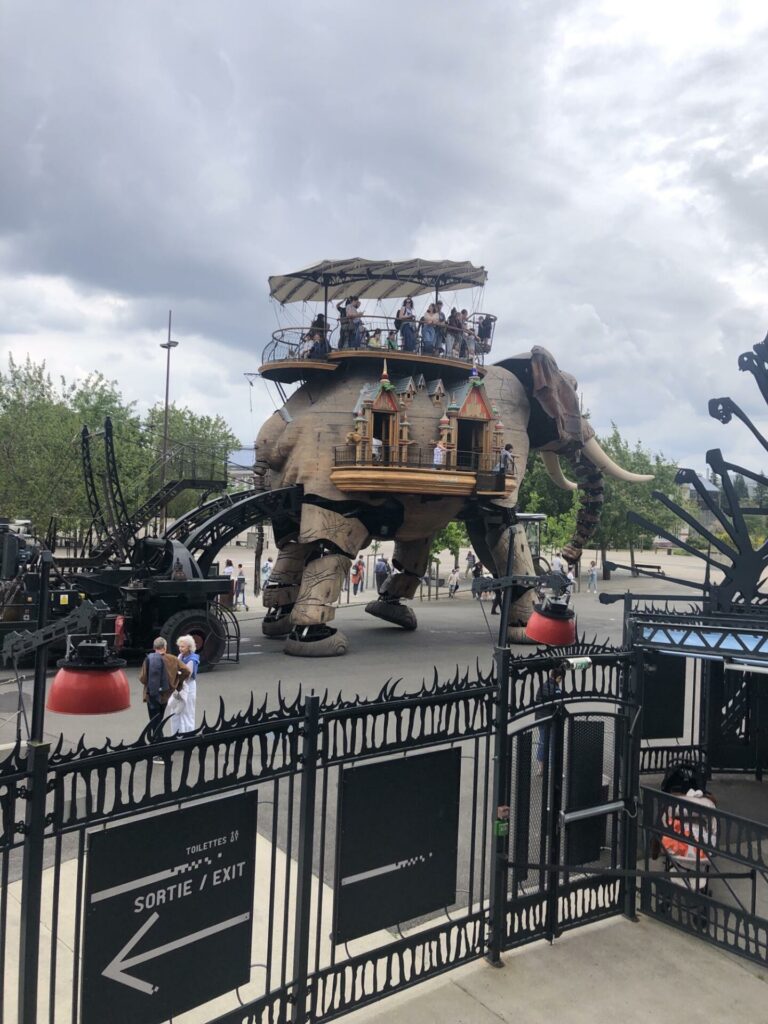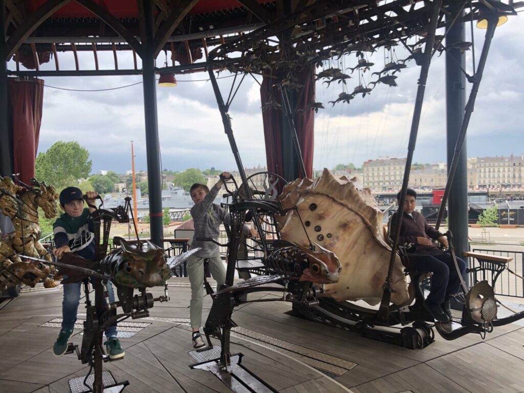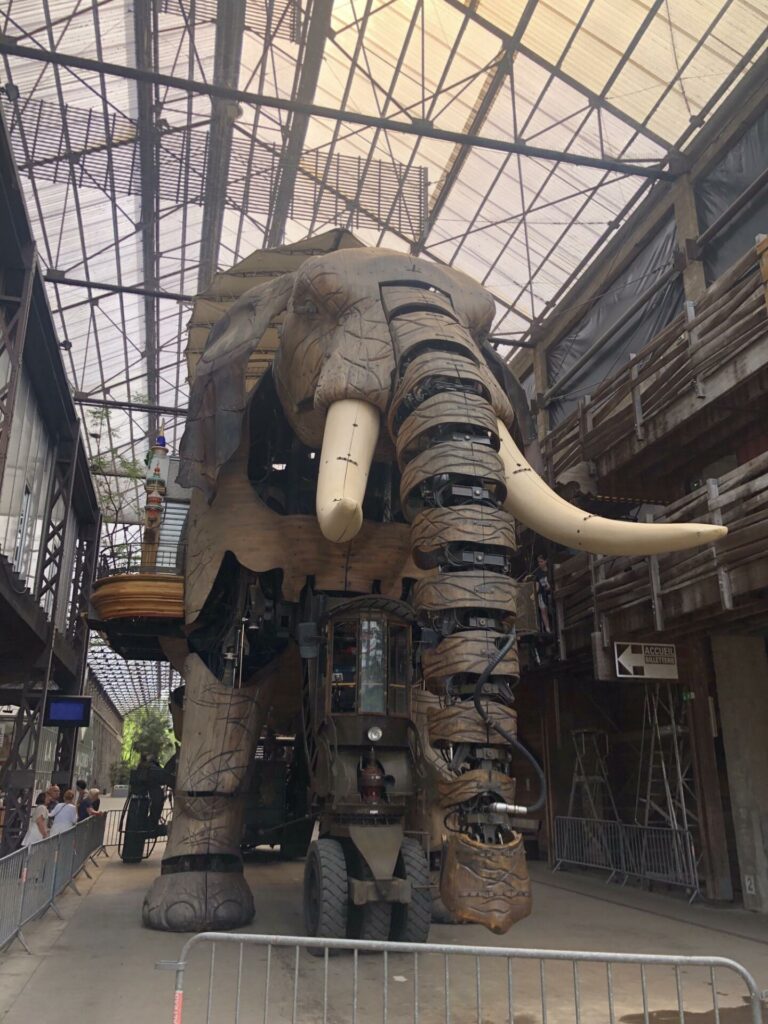 gare. Nous avons encore découvert des arbres très anciens et des fleurs magnifiques. Puis, nous avons pique-niquer aux machines de l’île. Nous avons découvert Les Halles avec l’éléphant et le Carousel monstres marins. De beaux moments.