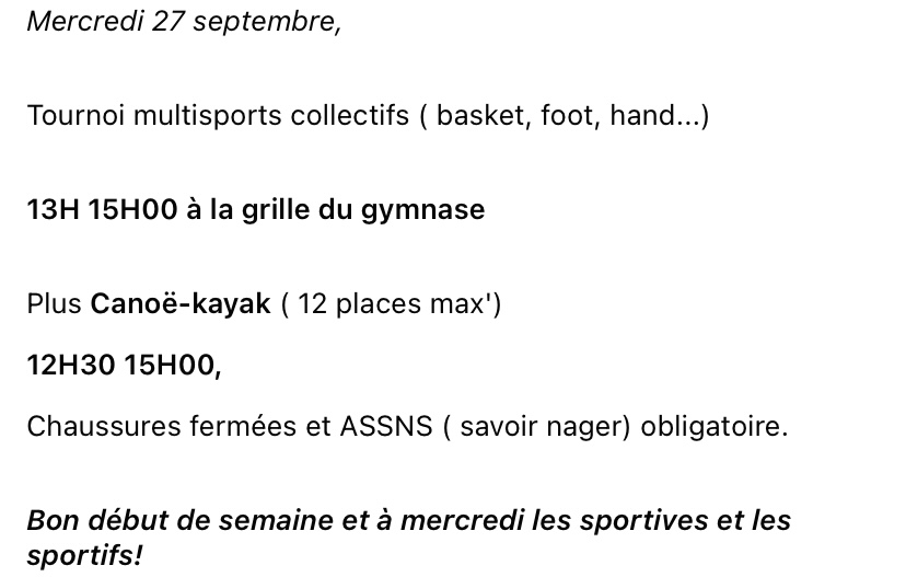 Petit tournoi sportif suivi d’un goûter partagé afin de clôturer cette année sportive tous ensemble!