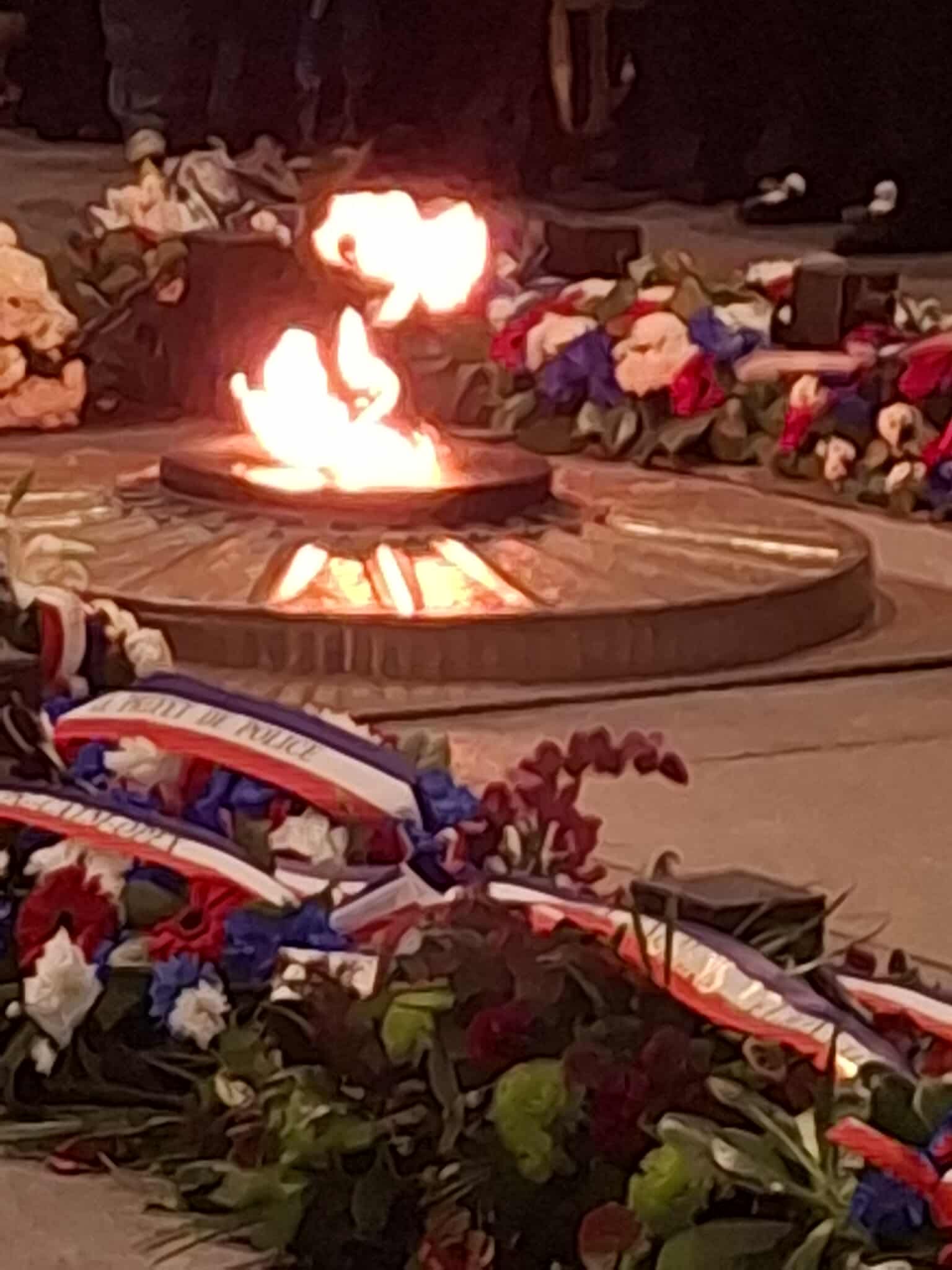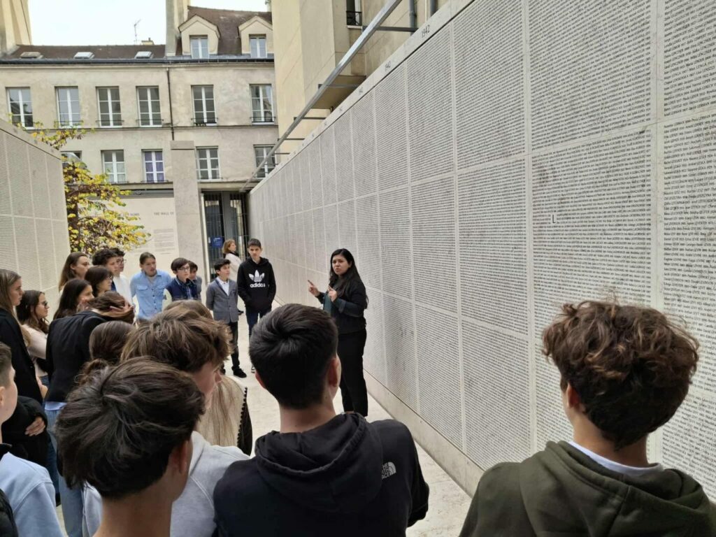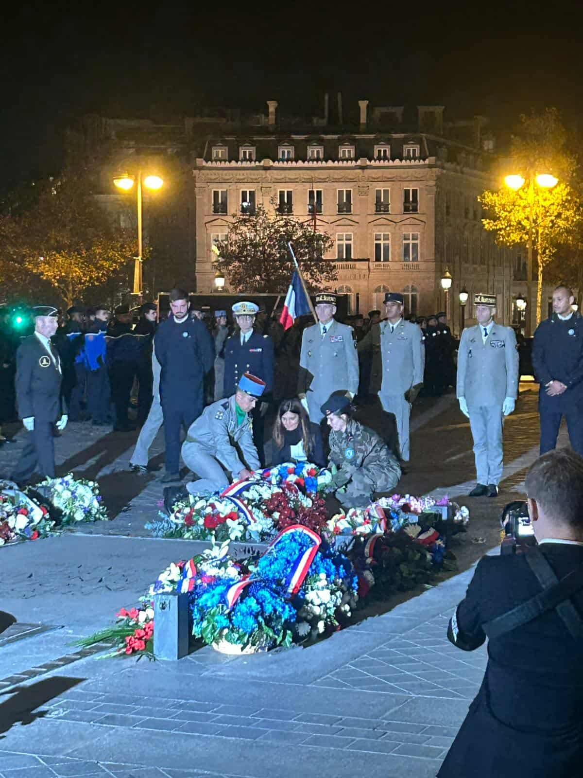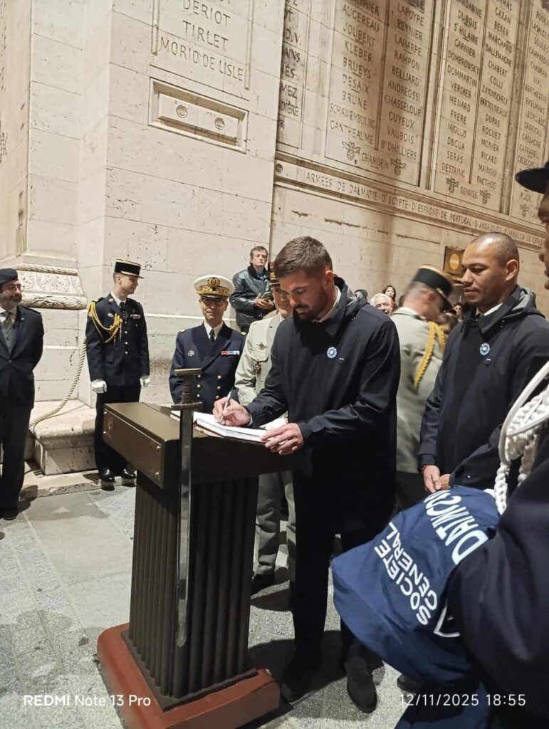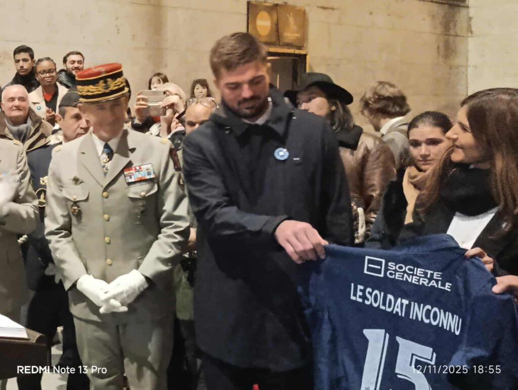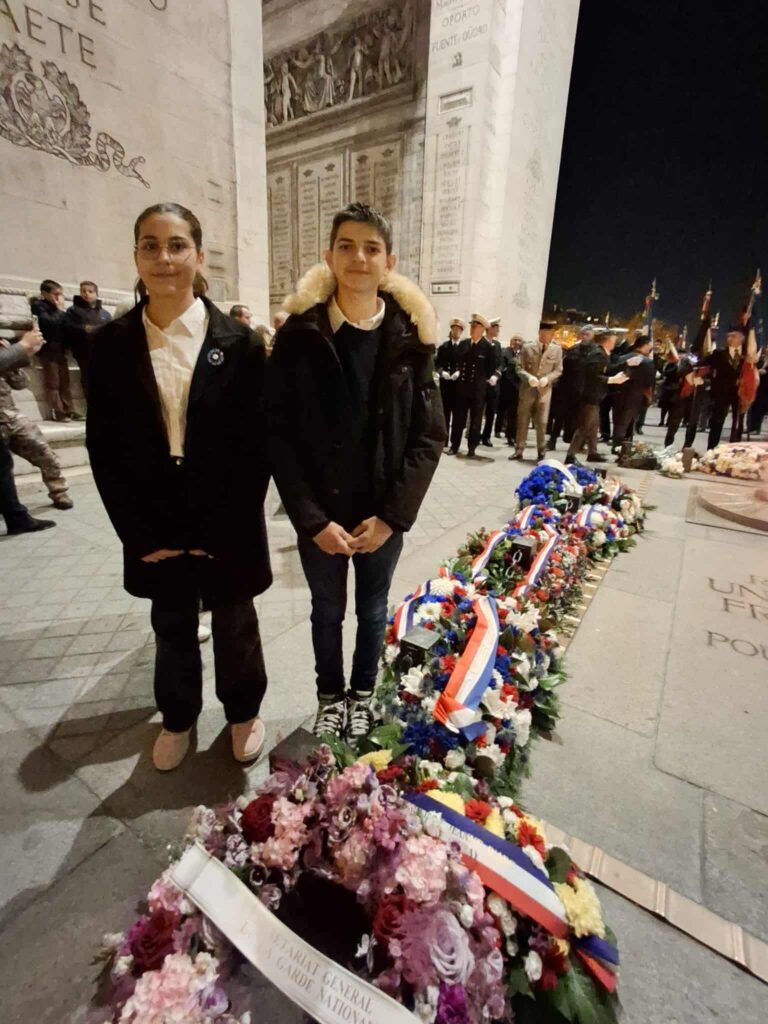 Visite du musée de la Shoah, déambulation dans Paris, puis ravivage de la flamme du Soldat Inconnu, sous l’Arc de Triomphe et dépôt de la gerbe de JDA par Hugo et Anouk, en présence de Mme la déléguée aux armées et aux Anciens Combattants, Alice Rufo et…aussi en présence de l’équipe du XV de France!!!!